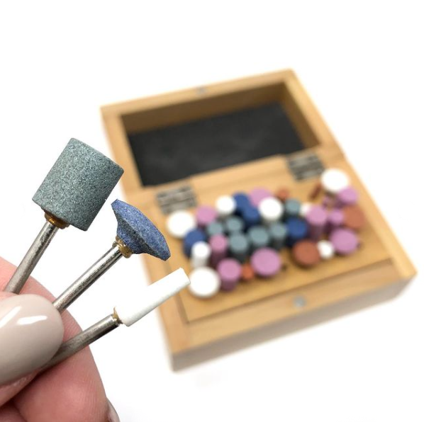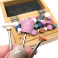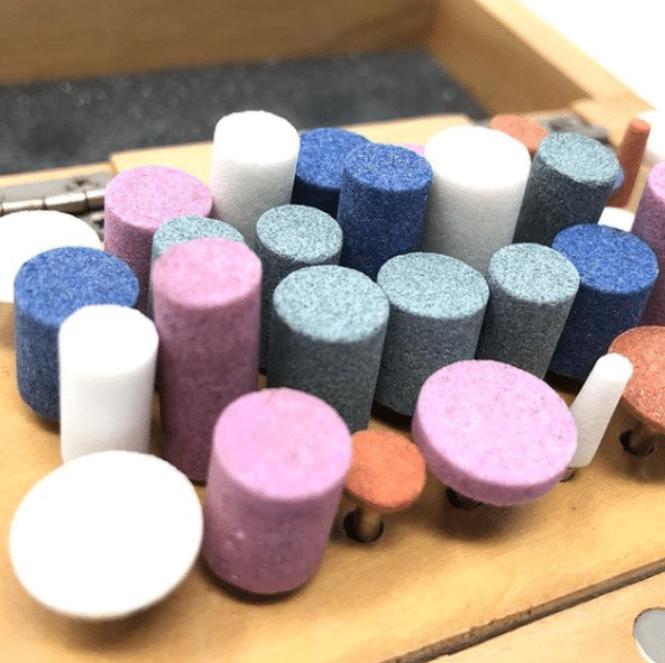 - A set of 36 abrasive polishing points in a wooden box