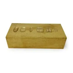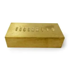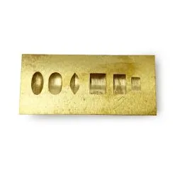 - A brass block, useful for punching the insides of rings and holding bands in place when hallmark stamping