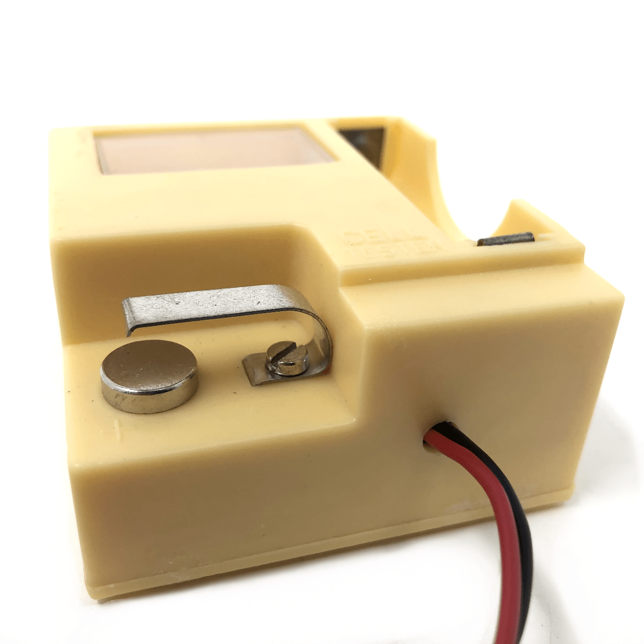 - A battery testing tool for checking button cells, AA cells and medium cells