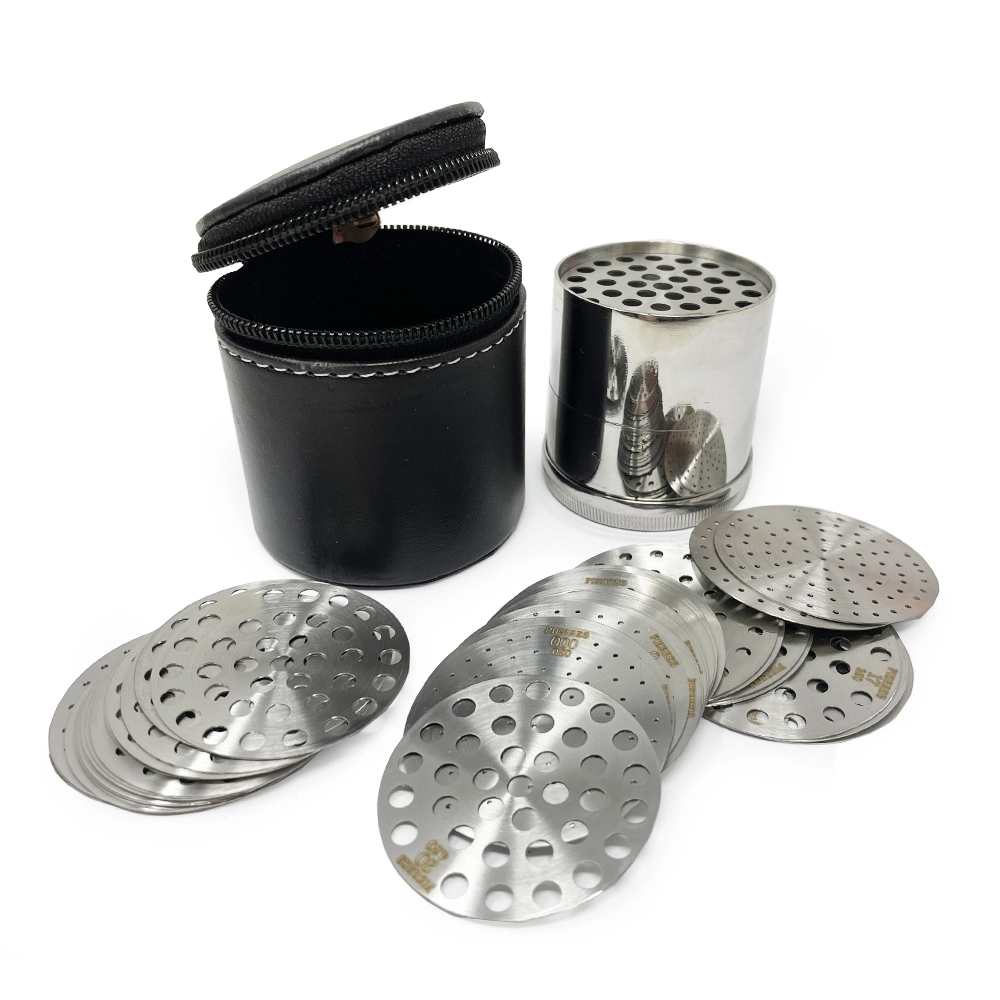 - Each sieve is precision drilled with holes ranging from 1.1mm to 4.5mm diameter