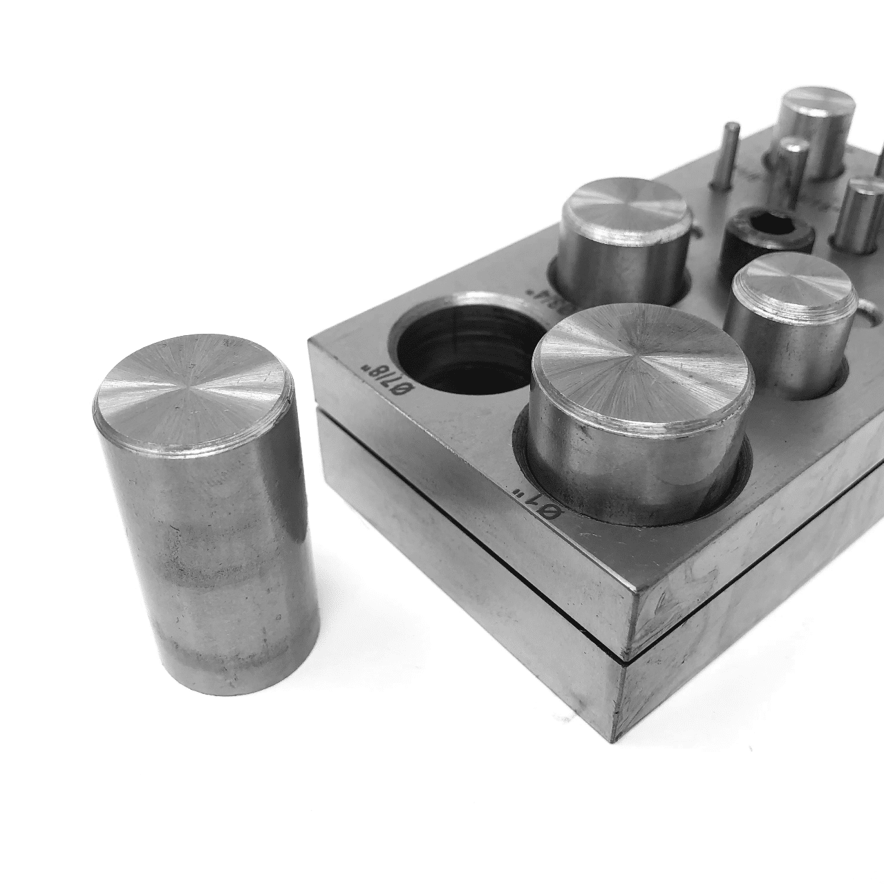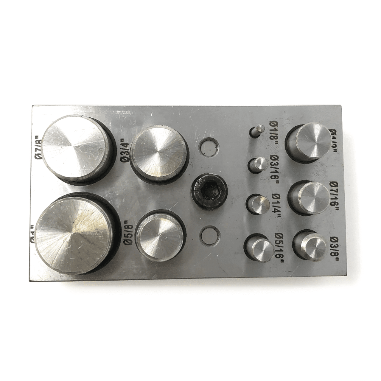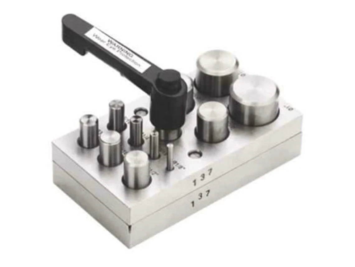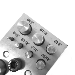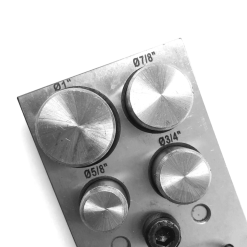 - A set of 11 round disc cutters with lever in sizes 1/8″ to 1″
