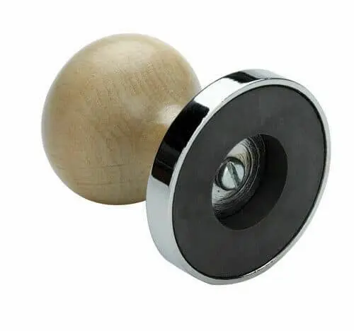 - A precious metal testing magnet with a round wooden handle