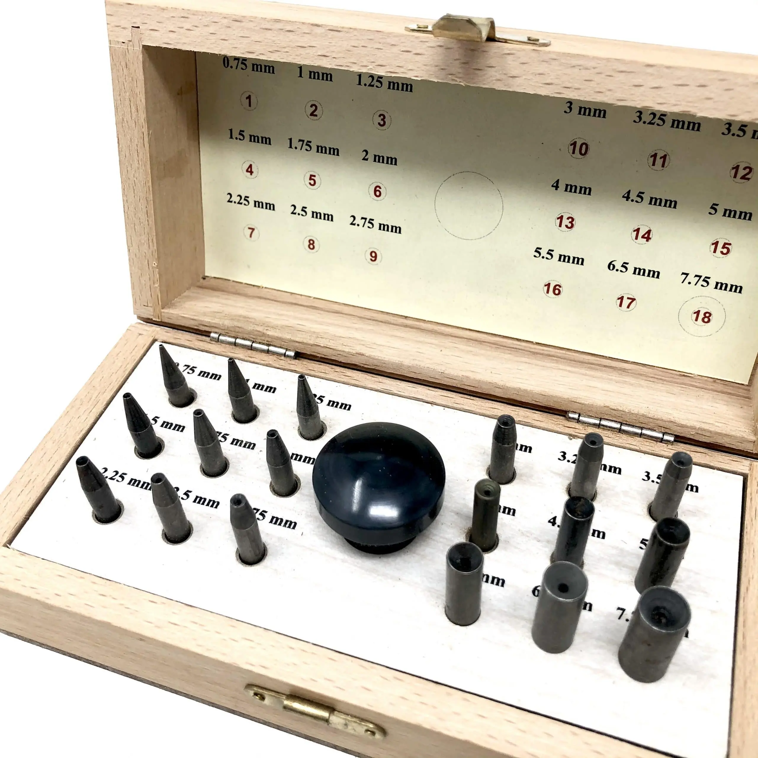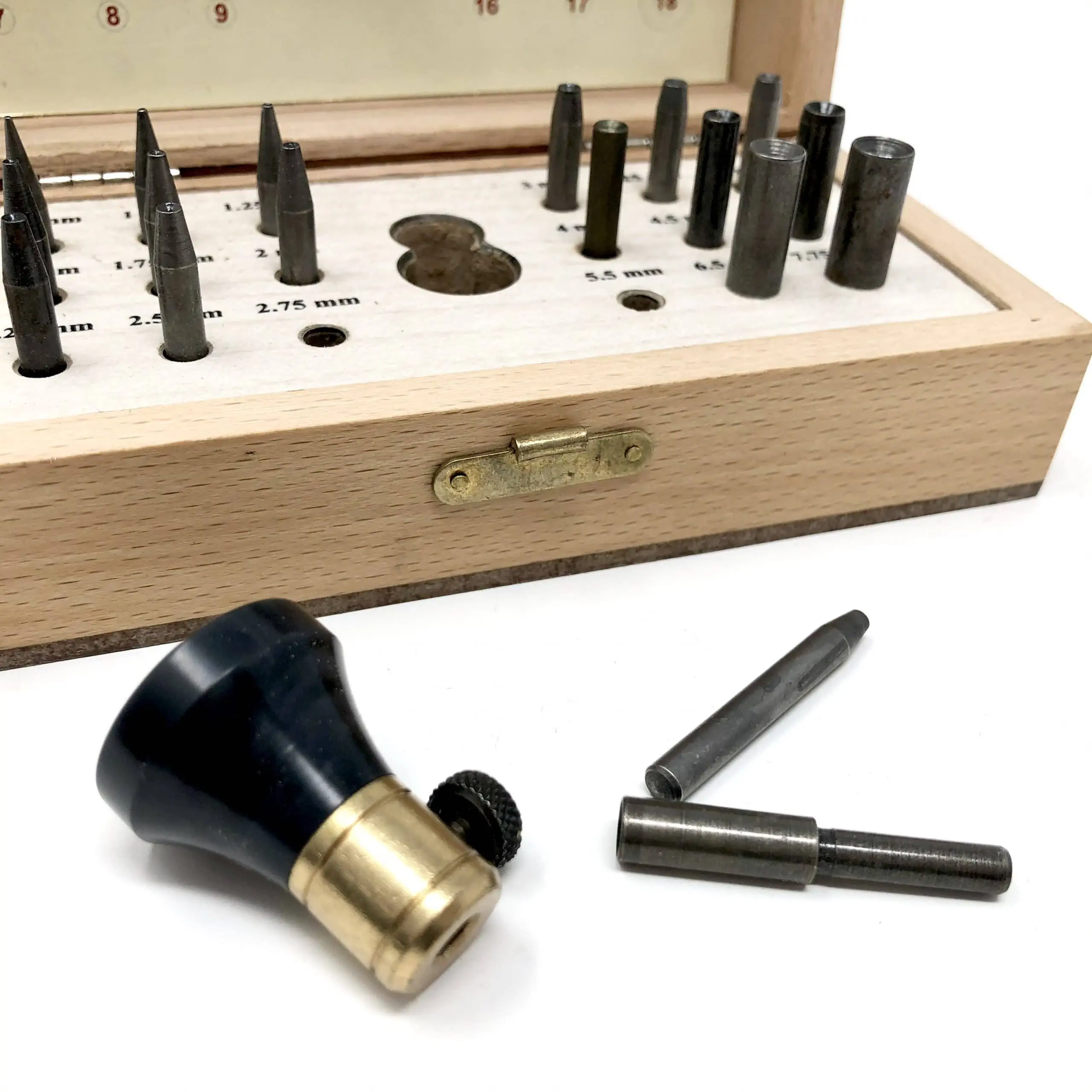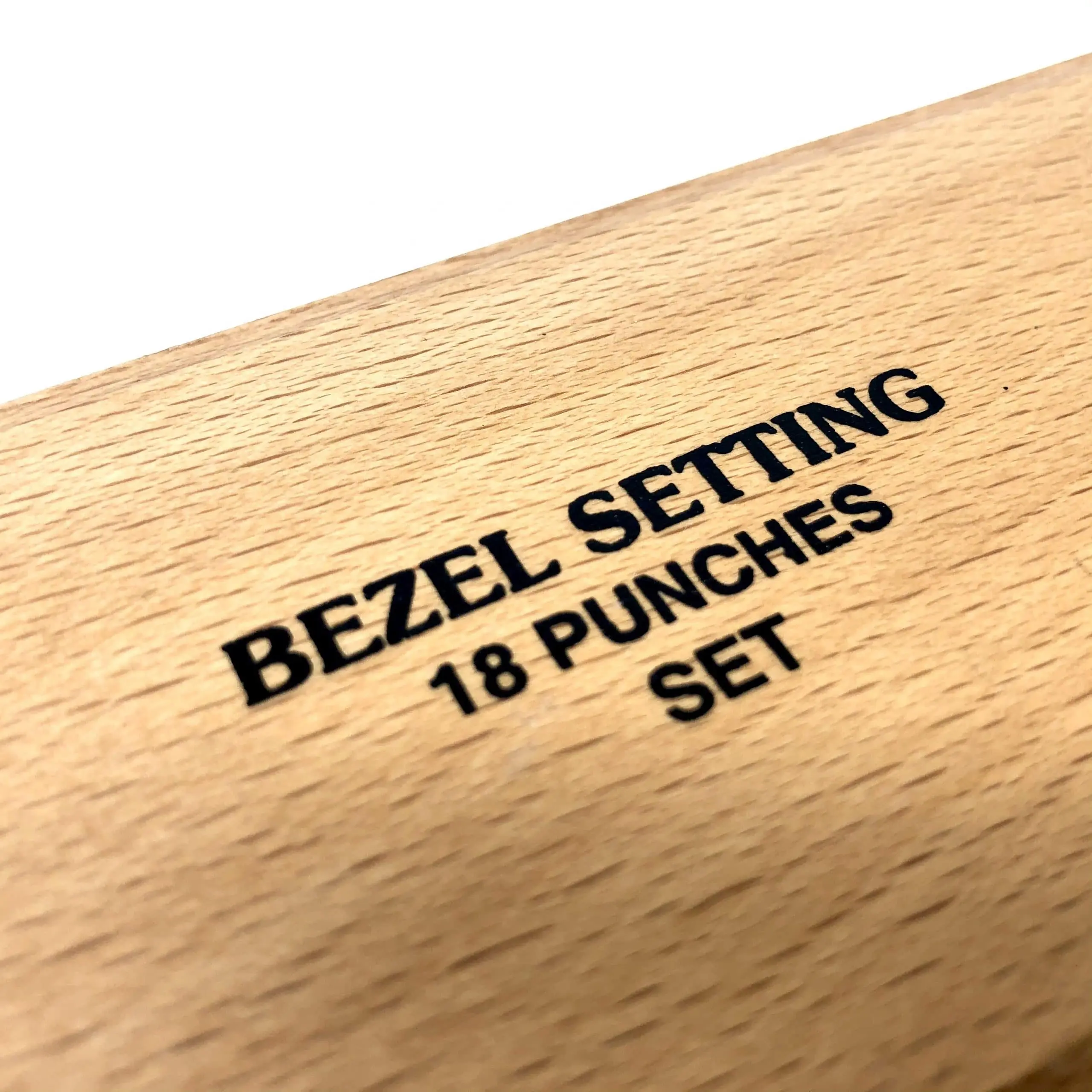- A set of 18 round bezel setting punches in a wooden storage box with handle