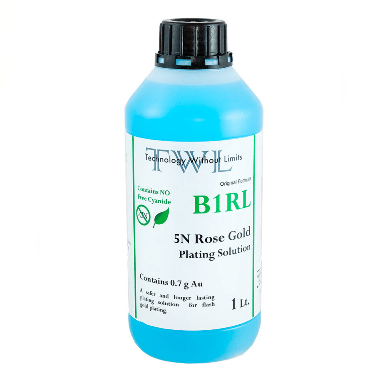Independent lab tests prove that TWL’s B1RL 5N has the world’s longest lasting Rose finish – a longer resistance to oxidisation than any other rose plating formula. Get beautiful long-lasting results in a much safer and environmentally-friendly formula. Not just safer but a higher quality surface finish. Cyanide-free means higher corrosion resistance over all substrates, especially silver or even brass substrates! Plus, unlimited shelf life! Even after months of use, it produces an unchanging colour. This product works cold-perfect for small jobs or repair-work. No waiting for the plating to heat up.