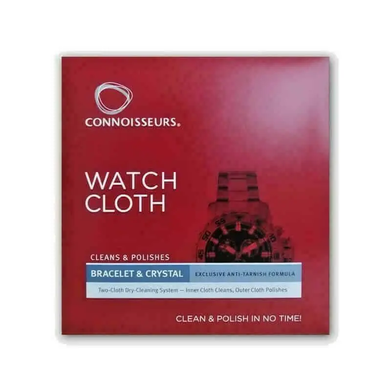 Clean, polish and protect your watches with the Connoisseurs Watch Cloth, the easiest way to bring the shine back to your favourite timepiece. The convenient Two-Step Dry-Cleaning System makes it easier than ever to remove tarnish and helps to prevent further tarnish build-up. A convenient and easy way to clean your watches at home or when you travel, it transforms your wristwatches from dull to dazzling.