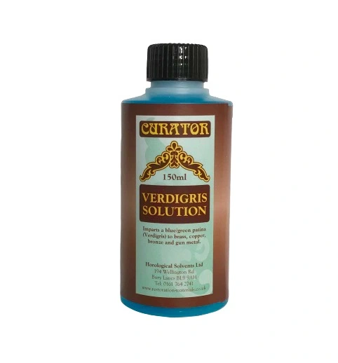 Verdigris Solution is a cold patination treatment which imparts a blue/green patina to brass, copper, bronze and gun metal. This replicates the Verdigris patina which occurs naturally to these metals due to atmospheric reaction.