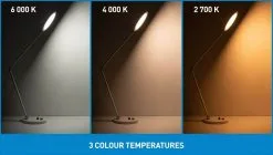 With a large 16.5cm (6.5”) diameter shade and evenly diffused light, the Tricolor Table Lamp enables an exceptional, shadow-free spread of light. Perfect for tasks that require attention to detail or accurate colour matching, you can choose from Daylight 6,000K, Cool light 4,000K and Warm light 2,700K to see which colour temperature works best for you. Bright and versatile, adjust the arms and shade to direct the light exactly where you need it. Ideal for use on your desk, by your bedside or in your kitchen, dining room or hobby room.