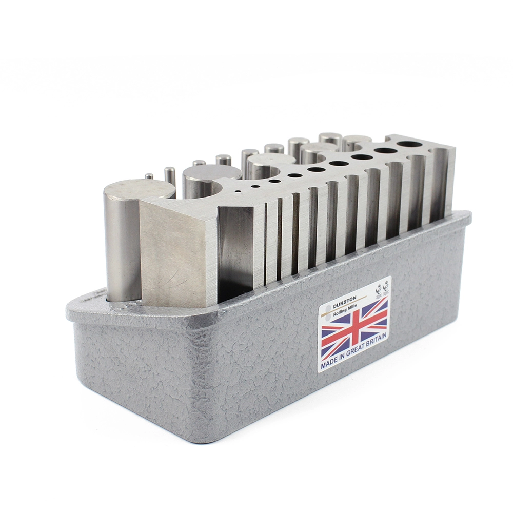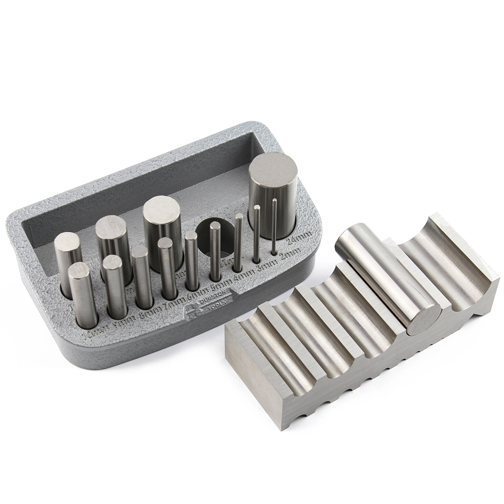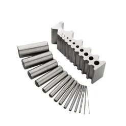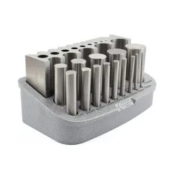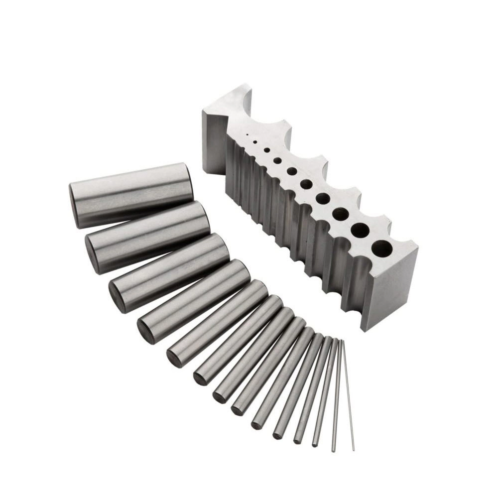 A highly polished hardened steel bending block for forging and bending. The set comes complete with bending block and hardened rods.