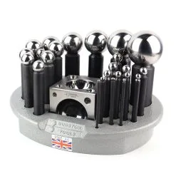 Durston’s Doming 26 Piece Punch Set is our globally top-selling set of the dapping tools for busy professionals. It features 24 punches ranging from 3mm right through to 50mm. Consisting of hardened, ground and highly polished dies for perfect results, our sets last you a lifetime.
