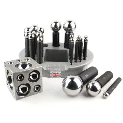 All set pieces fit perfectly into Durston’s unique carrying tray. Included in the collection is the 70mm square dapping block which has a total of 26 half spheres, ranging from 3mm to 52mm. We finish the half spheres like no other; hardened, ground and polished to perfection.
