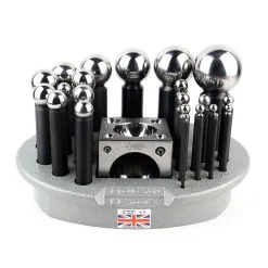 All set pieces fit perfectly into Durston’s unique carrying tray. Included in the collection is the 70mm square dapping block which has a total of 26 half spheres, ranging from 3mm to 52mm. We finish the half spheres like no other; hardened, ground and polished to perfection.