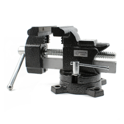 The new Durston Large Bench Vice will securely hold your work whilst allowing you to swivel the base as required, a full 360°. Lock the vice into place by sliding the T handle, loosen and tighten the jaws by turning the easy access body handle. The body is powder coated cast iron for strength and stability and also ensuring a long service life. The base is also pre-drilled with four countersunk holes for mounting to your work surface.