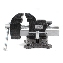 The new Durston Large Bench Vice will securely hold your work whilst allowing you to swivel the base as required, a full 360°. Lock the vice into place by sliding the T handle, loosen and tighten the jaws by turning the easy access body handle. The body is powder coated cast iron for strength and stability and also ensuring a long service life. The base is also pre-drilled with four countersunk holes for mounting to your work surface.