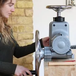 The 50-1 gearbox making it that much easier to Roll out material. – It will take 50 turns of the handwheel to turn the rolls once. The gearbox and handwheel has been designed to work together to make turning so much easier. The specially designed Patent Pending gearbox along with the inertia of the handwheel means you can turn the handwheel up to 10 times as quick as a standard rolling mill with a 4-1 reduction