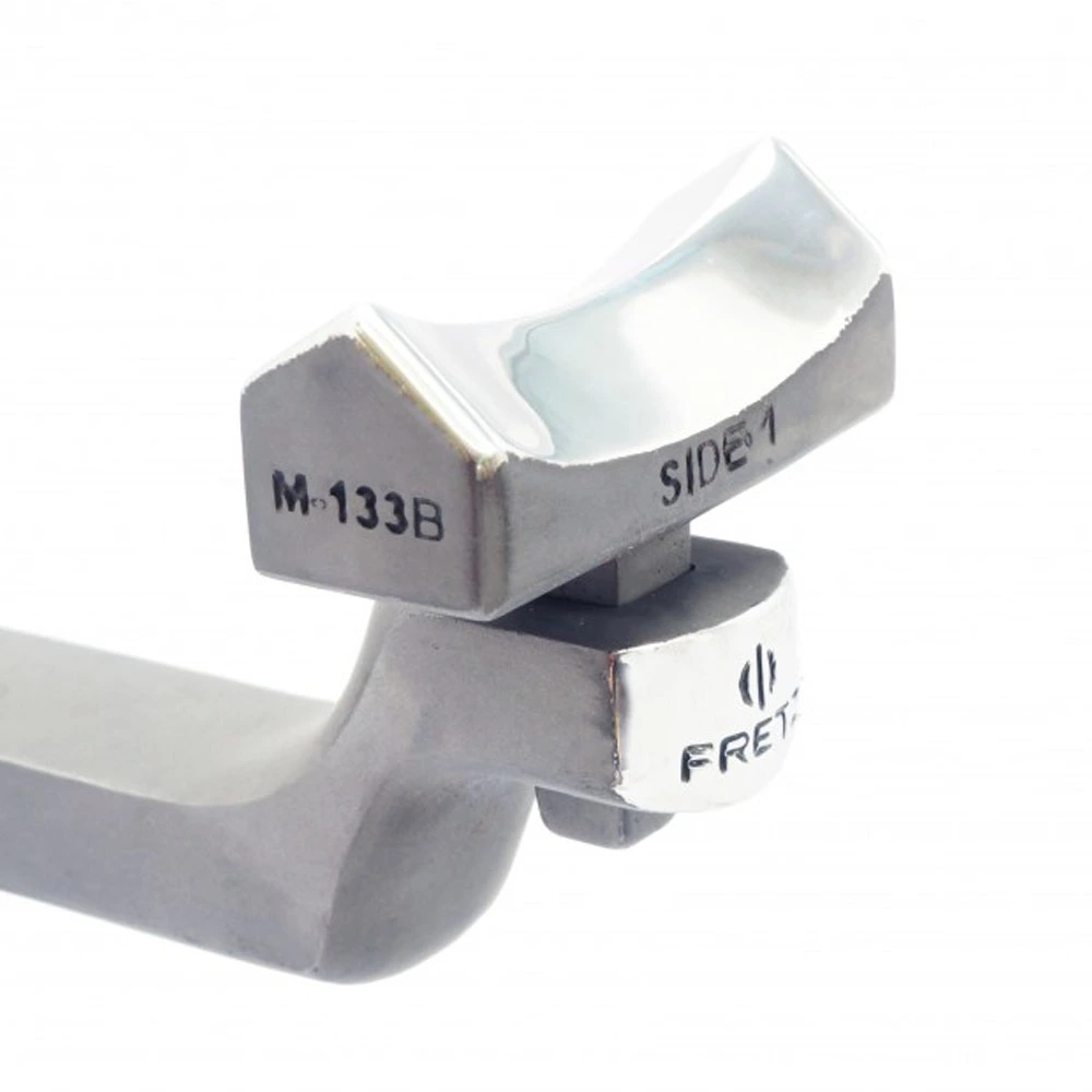 Fretz Design has designed fluting stakes for domed and flat bracelet surfaces. The new M-133A and M-133B make it possible to flute concave bracelets and other shapes with handcrafted random or uniform flutes. The stakes M-133A and M-133B are designed to be used after the project is formed on the concave M-104 Stake.