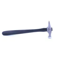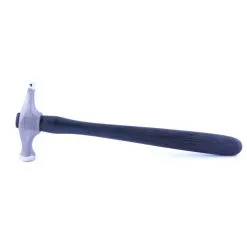 A signature combination of two essential hammer faces, ideal for small forging projects. The cross peen is used to stretch metal in one direction when forging. The goldsmithing face is used for radial forging, moving metal outward in all directions, as well as planishing to remove marks left by the cross peen. Both faces have no need to polish either end, just keep them tidy with Scotch Brite® or 220 sandpaper. Unless this hammer is the final tool to touch the work, there is no need to polish. This hammer is required for classes at the Revere Academy of Jewellery Arts in San Francisco, California.