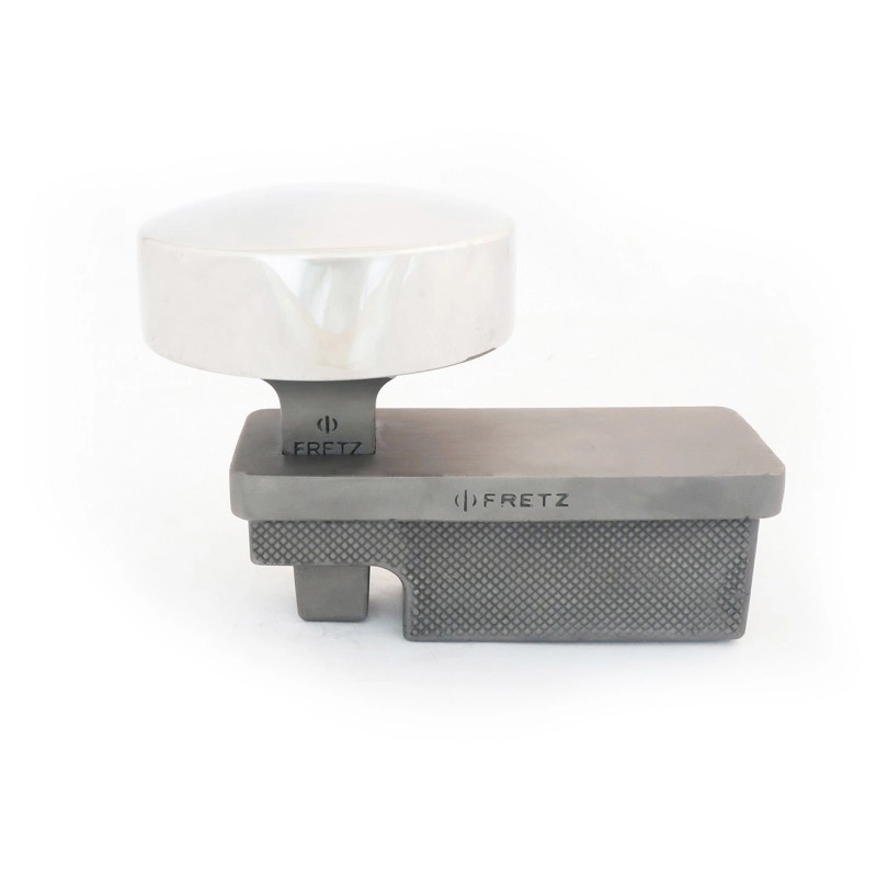 The MA-Series are round mushroom stakes of about 70 mm diameter in 420 hardened stainless steel. The tapered tangs fit in the Fretz H-101 Bench Holder or Fretz VH-101 Vice Holder. The design of each of the four stakes makes them very useful for forming or forging non- ferrous metal projects or jewellery. They are rugged tools that can be used with either light or very heavy hammers.