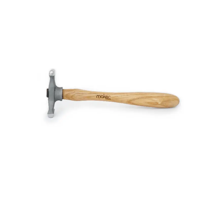 The Maker Narrow Raising Hammer is a crosspein used to sink metal into concave shapes and fit into curves where a round planishing hammer will not fit. The hammer also leaves a dramatic texture on flat, concave and convex metal and jewellery.