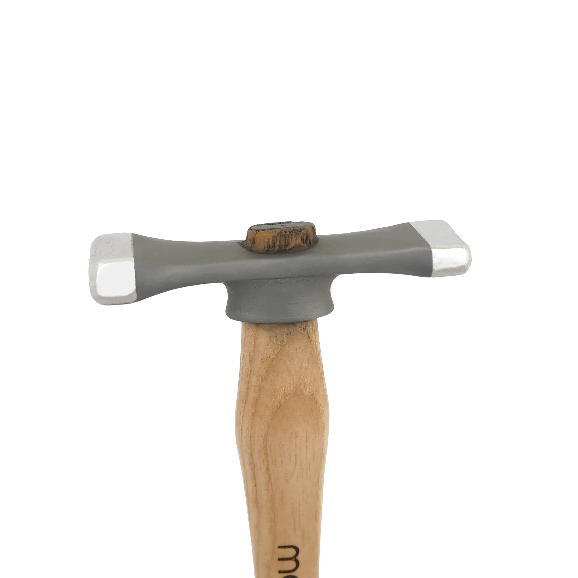 The MKR-402 Maker Wide Raising Hammer is a delicate crosspein hammer for texturing round wire with a subtle hammer texture. It is also used for forming thin metal into concave shapes on miniature stakes.
