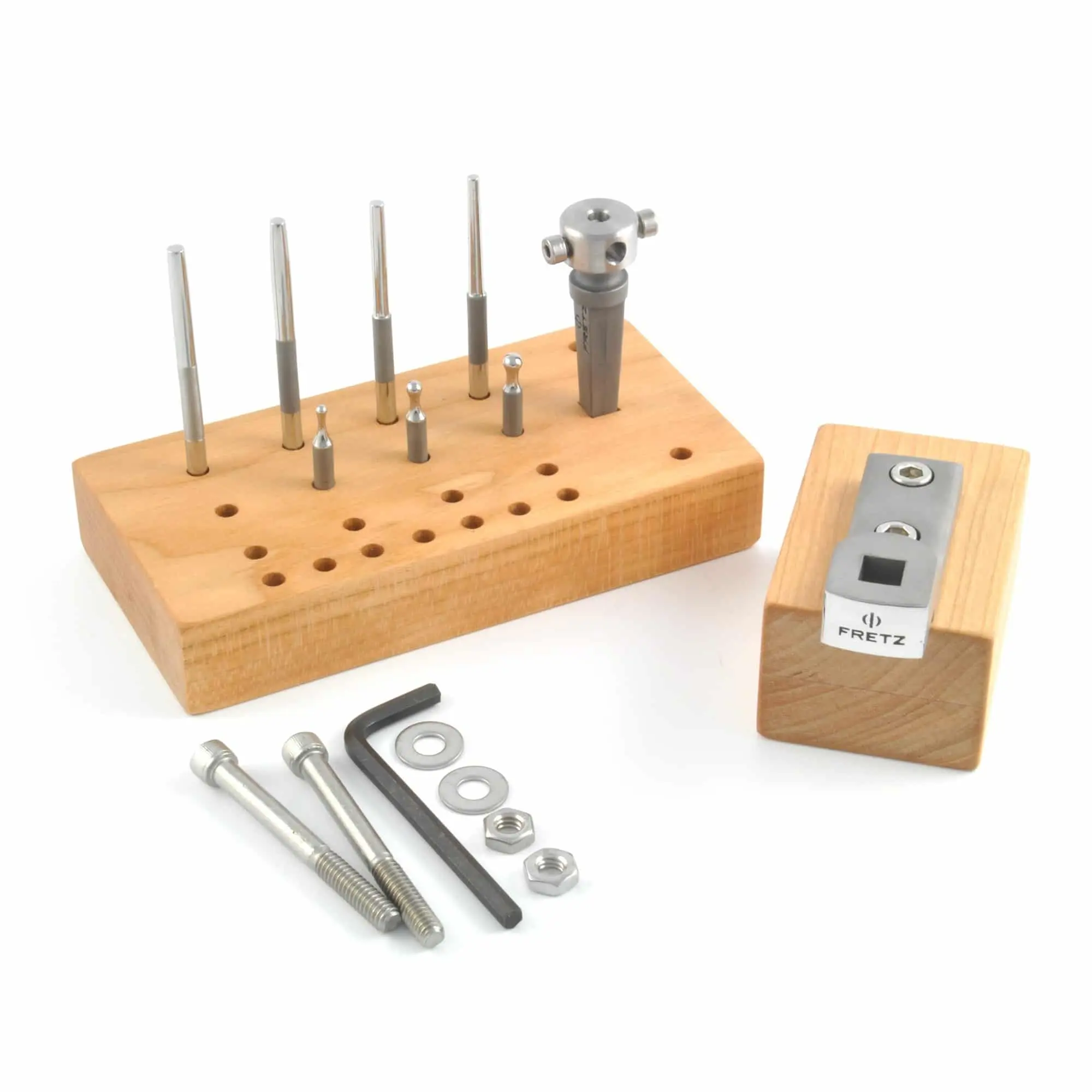 The Fretz Set #3 is a group of very small mandrels that fit into the H-2 Holder. The various mandrels make it possible to form very tight curves on bezels and other small shapes where the Bezel Stakes do not curve enough. The Micro Mushroom Stakes allow the bezels to be domed if desired. Two H-1 Holders are useful when forming a bezel with more than one stake.