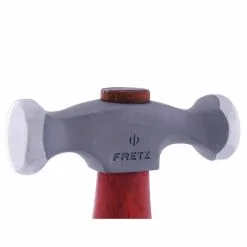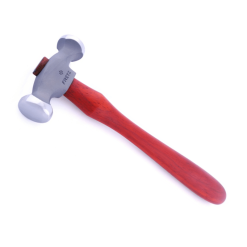 The Planishing Hammer is for smoothing metal. The round side is used if the metal has previous raising hammer marks and these need to be smoothed out. The flat side will refine the hammer marks from the rounded side of the Planishing Hammer to a nearly smooth finish. This hammer is also used to size rings, form bezels and general forming of metal against mandrels and stakes. This is the most used hammer.