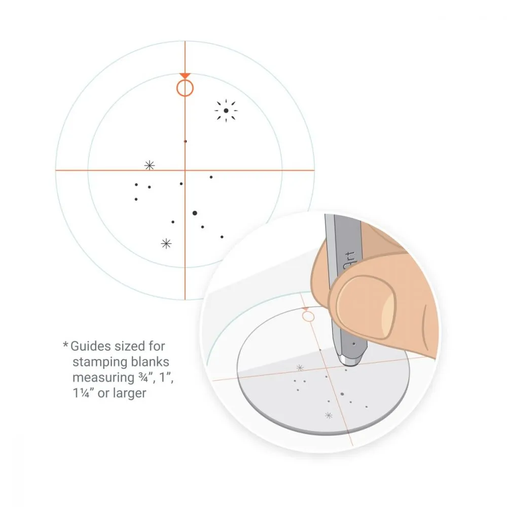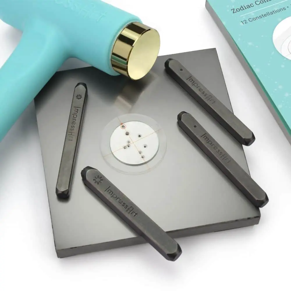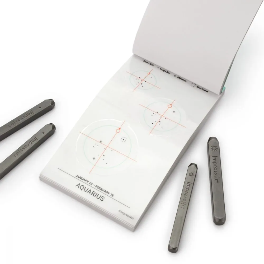 Create beautiful hand-stamped constellation jewellery with our easy-to-use Zodiac Constellation Kit. Use zodiac sticker guides and coordinating stamps to design out of this world pieces! For a spark of colour, stamp select stars with the 1.8mm crystal setter from ImpressArt’s Crystal Setter Kit.