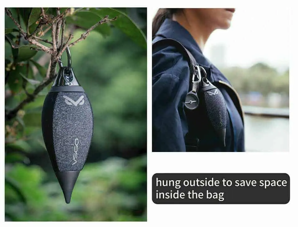 - The Blower can be attached to the outside of camera bags, handbags, rucksacks, belt loops etc. It’s magnetic lock allows you to access the blower easily, and keeps it securely fastened to whatever you have attached it to.